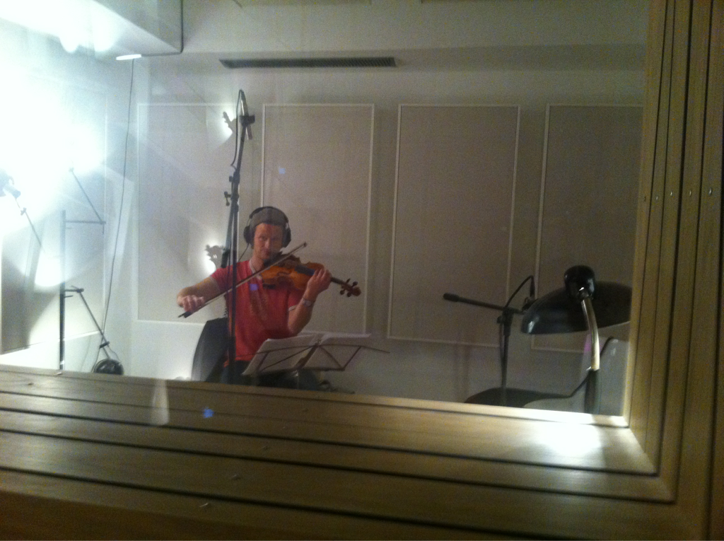 Hier sehen wir David beim Streichen, denn heute war großer Streichtag. Nachdem zunächst eine Stunde verstrichen war, während der uns die Technik einen Streich spielte, konnten Annika (auf diesem Foto leider nicht zu sehen) und David endlich loslegen und strichen nicht nur fantastische Noten auf Cello, Bratsche und Geige, sondern zupften sie auch. Und wozu? Um außergewöhnlich guter Musik einen noch besseren Anstrich zu geben.